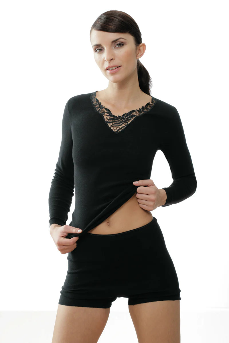 Yün & Angora Karışımı Doğal Termal Yakası Dantelli Uzun Kollu İçlik Kadın Outlet Siyah